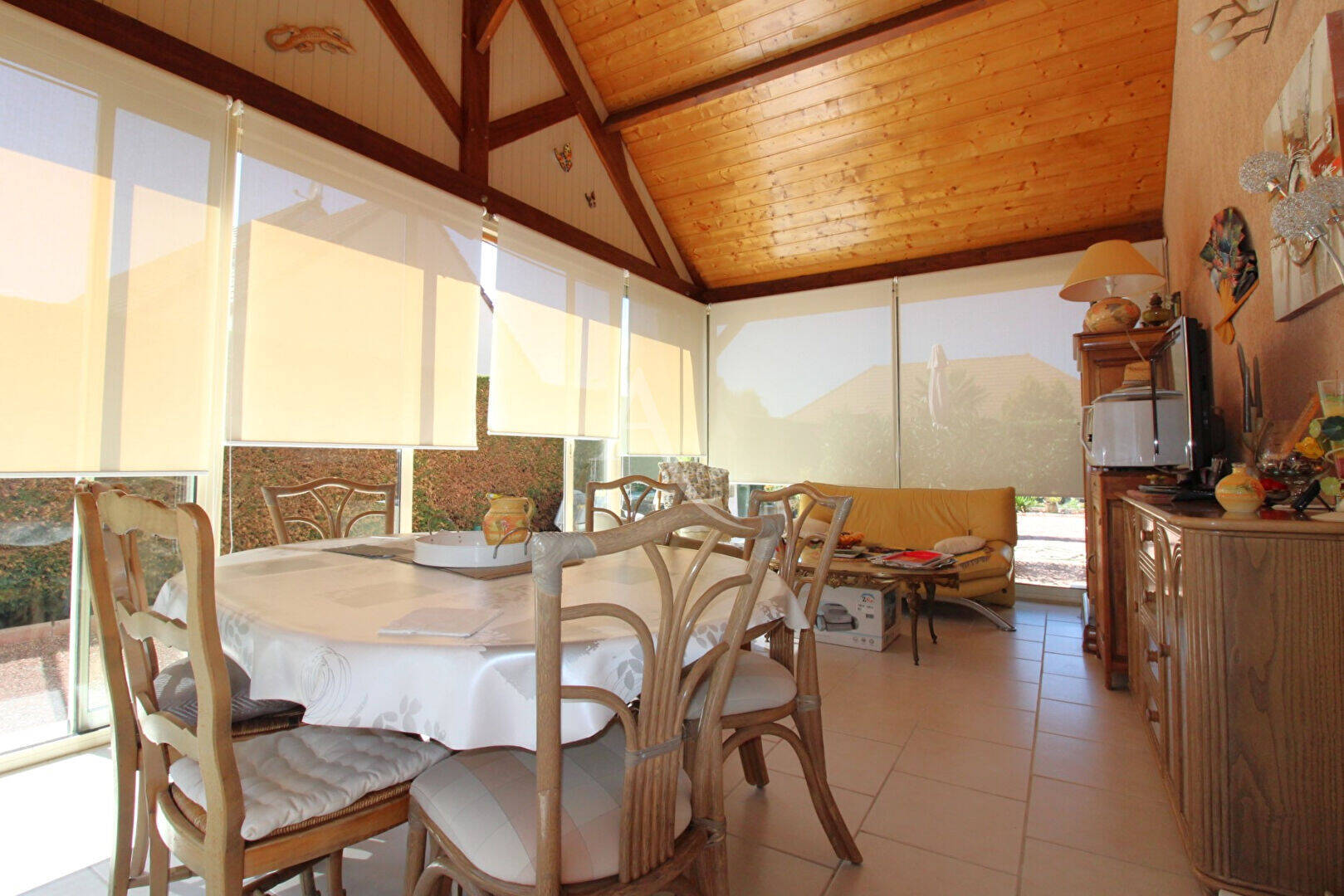 Une véranda lumineuse de 18 m², idéale comme espace de détente ou salle à manger d'été,